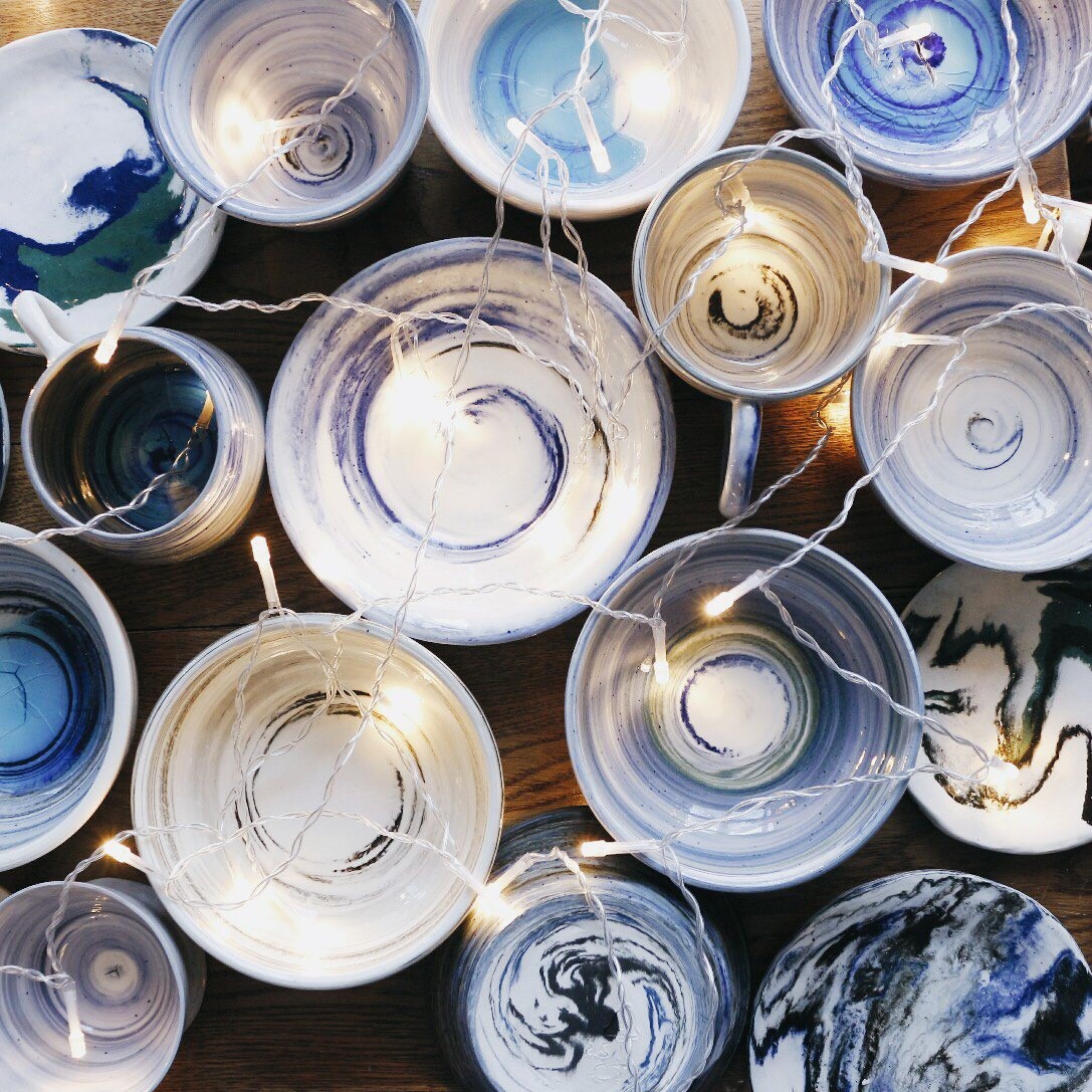 Нерияги - это техника, при которой мы используем несколько цветных глин. Когда мы делаем изделие на гончарном круге, они перемешиваются друг с другом, за счет этого получаются самые разные узоры.