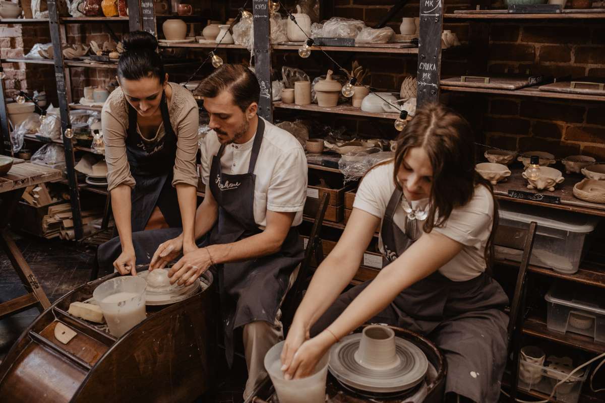 На мастер-классе вы сможете создать собственный шедевр и не переживайте, если вы ни разу ранее не держали в руках глину – большинство наших гостей знакомятся с гончарным кругом у нас уже на первом занятии создают отличные по качеству изделия.