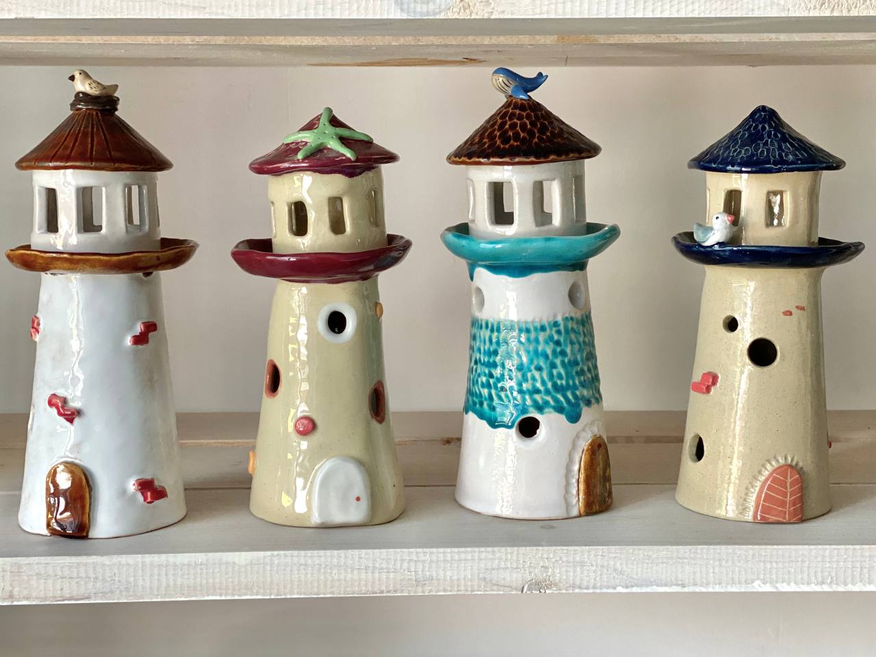 Осталось выбрать цвета глазури и дать изделию высохнуть и пройти обжиги. Свет в маяке - это настоящее чудо.