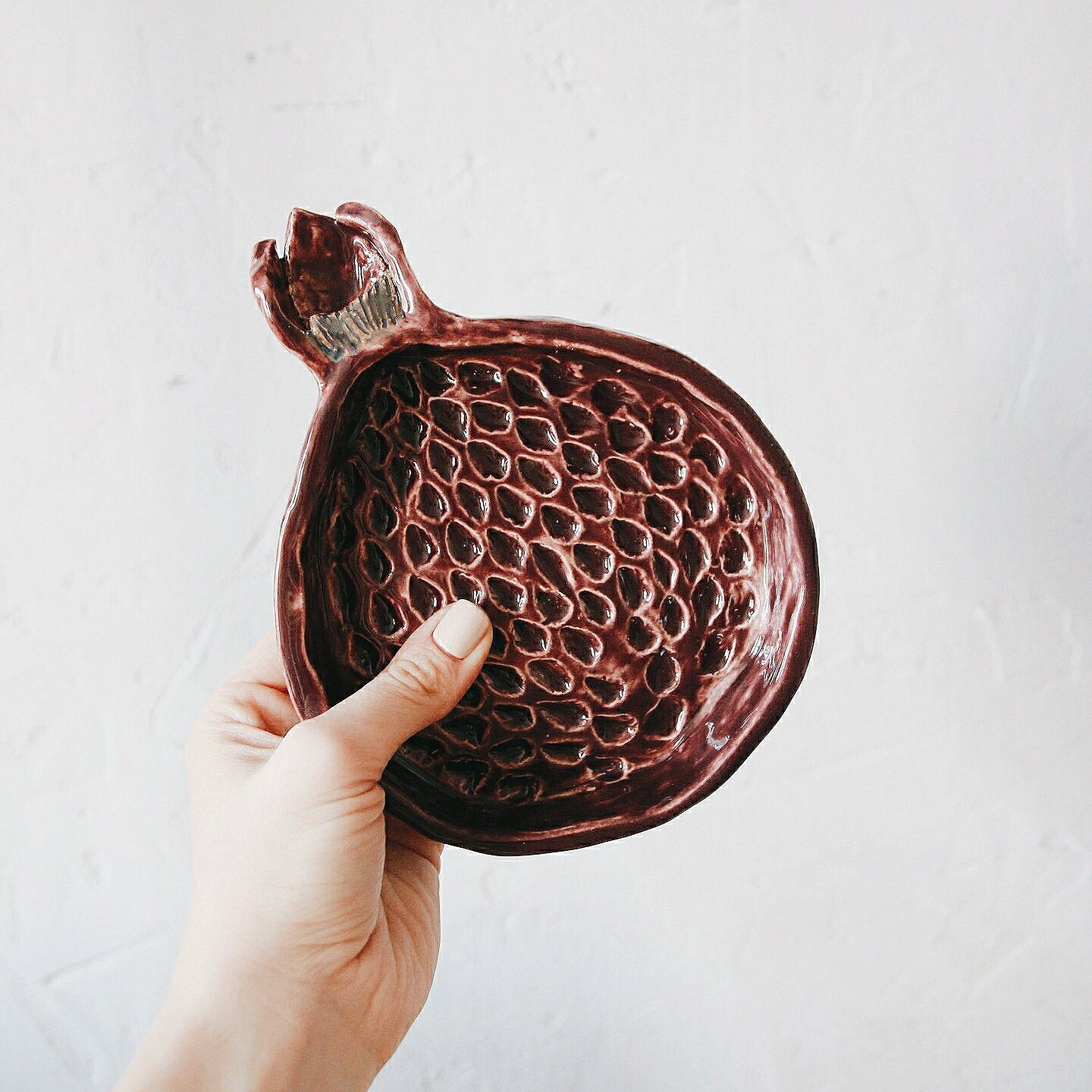 Осталось немного помучаться, выбирая из десятков красивых глазурей и подождать 10 дней - гранату нужно хорошо высохнуть и два раза пройти обжиг. Теперь можно класть в него ягоды, орехи, сухофрукты и конечно зернышки граната! А можно хранить в нем важные мелочи. Как бы вы его не использовали - внимание гостей к такому красавчику всегда будет высоким ;D