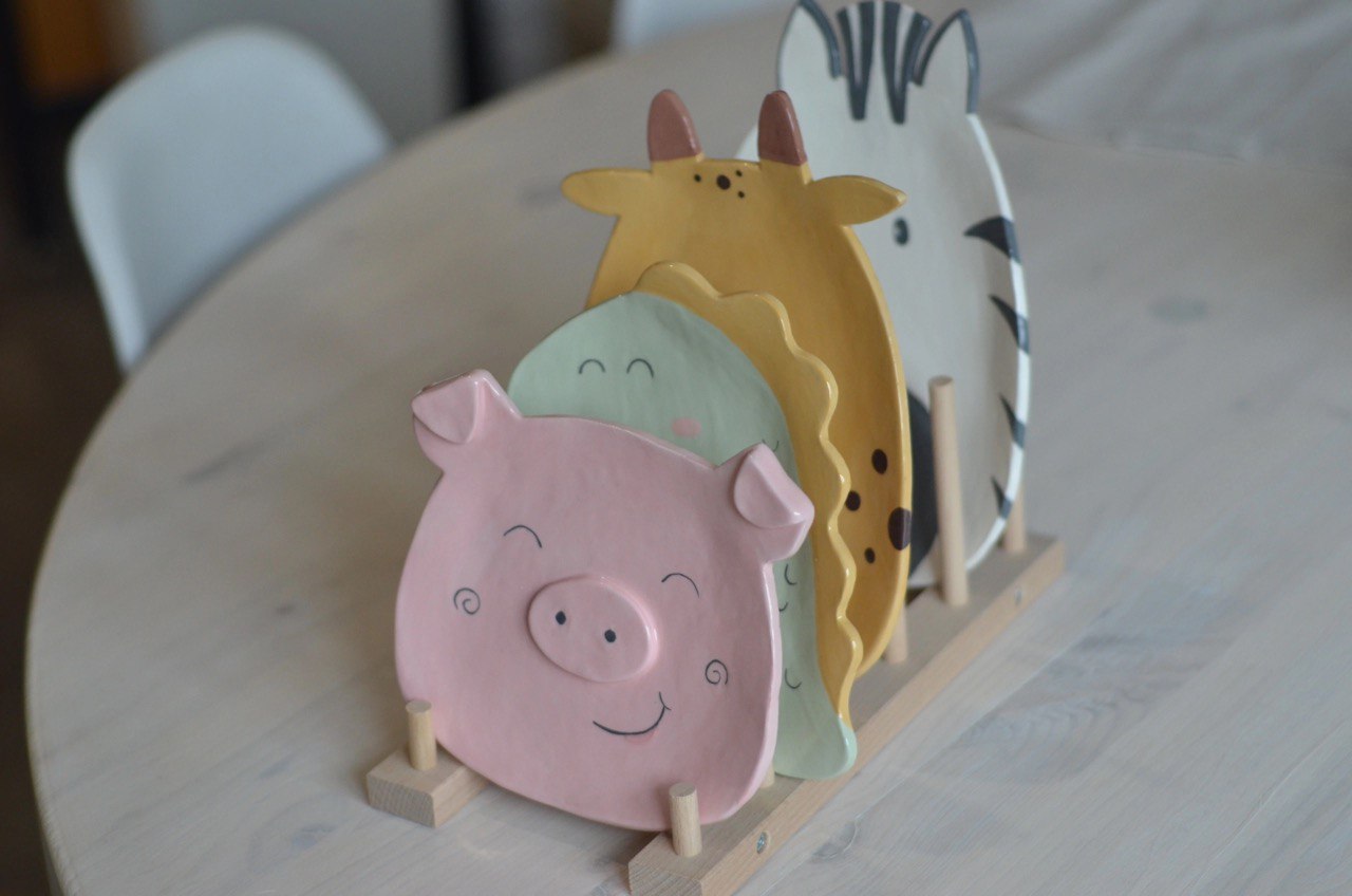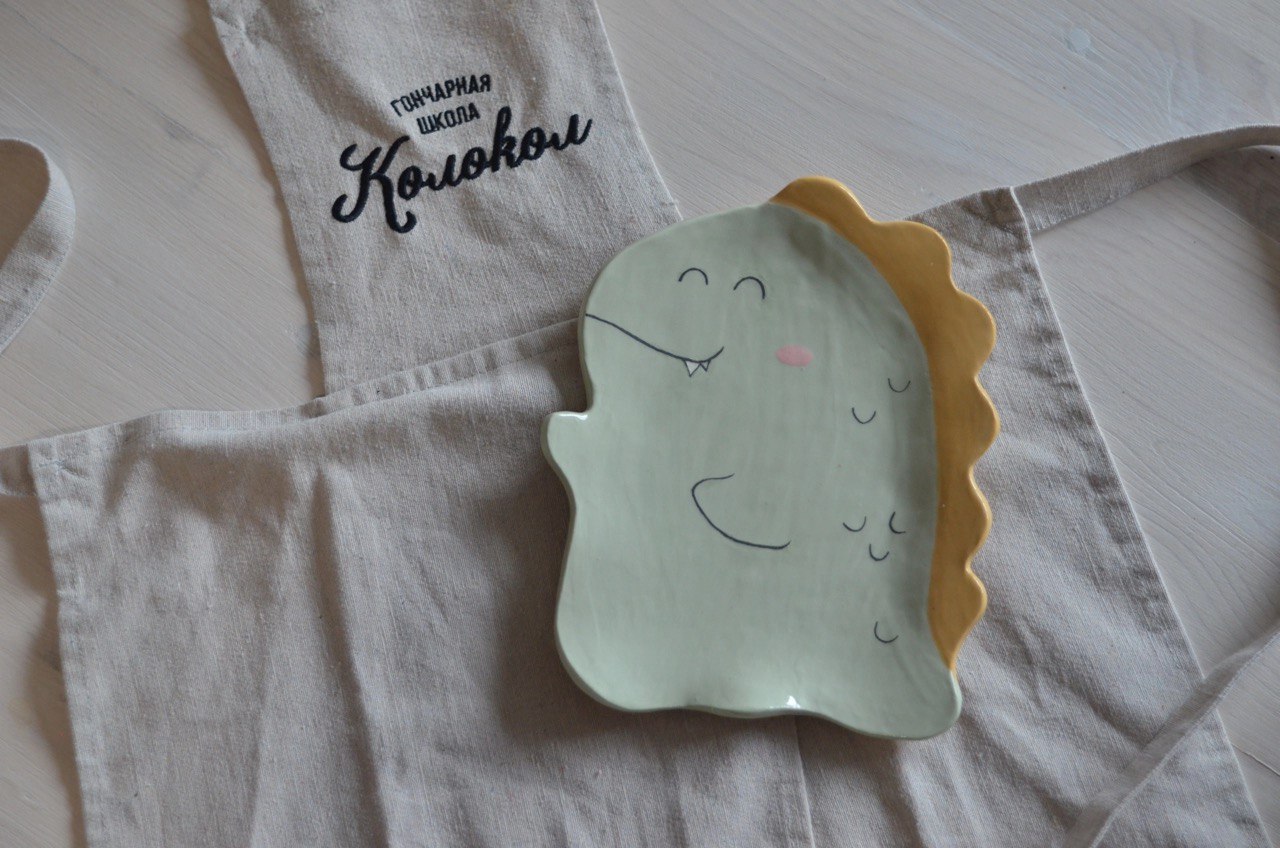 Ребёнок сам слепит плоскую тарелку и нарисует на ней ангобом любимого зверька. А тарелочка потом сможет украсить ваш дом!