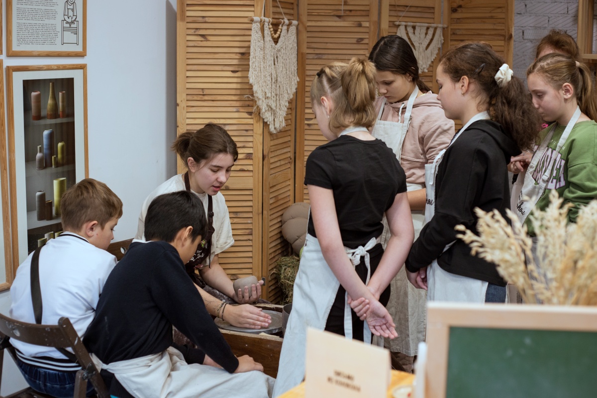 ✔ Мастер-шоу за гончарным кругом Каждый из ребят сможет прикоснуться ко всем технологическим процессам создания изделия на гончарном круге (*Только демонстрация. Изделие, созданное на мастер-шоу, не сохраняется).