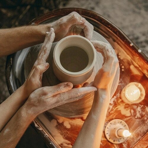 На мастер-классе вы сможете создать собственный шедевр и не переживайте, если вы ни разу ранее не держали в руках глину – большинство наших гостей знакомятся с гончарным кругом у нас уже на первом занятии создают отличные по качеству изделия.